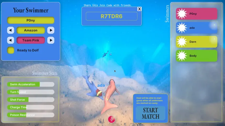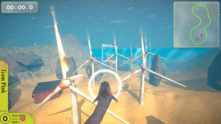 Underwater mini-golf with cybernetic dolphins. Online multiplayer for 1-8 players.
