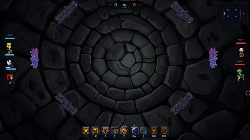 Nebulagon is a fast-paced, skill-based 2D arena PvP game where teams of unique heroes clash in rounds of intense combat. Choose from 8 heroes across 4 roles, master 72+ unique abilities, and fight in sub-5-minute matches where every skillshot and dodge counts.