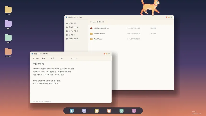 Sill Cats — игра от компании SQOOL, разработанная для платформы PC. Проект совмещает в себе такие жанры и элементы, как симулятор. Дополнительно игроки выделяют такие особенности игры, как казуальная игра, симулятор, 2d-платформер и idle-игра. Игра рассчитана на одиночное прохождение, многопользовательские режимы не предусмотрены.