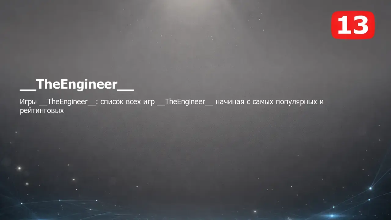 __TheEngineer__ — все игры разработчика __TheEngineer__ представлены на данной странице, начиная с самых популярных и рейтинговых на PC (ПК), PS4, Xbox и других платформах. Всего __TheEngineer__ выпустила 1 игру.