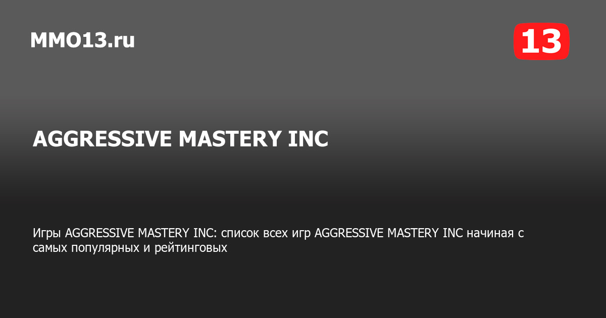 AGGRESSIVE MASTERY INC — все игры разработчика AGGRESSIVE MASTERY INC представлены на данной странице, начиная с самых популярных и рейтинговых на PC (ПК), PS4, Xbox и других платформах. Всего AGGRESSIVE MASTERY INC выпустила 1 игру.