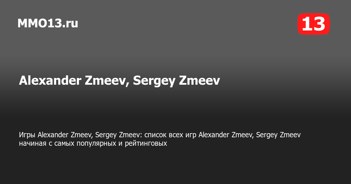 Alexander Zmeev, Sergey Zmeev — все игры разработчика Alexander Zmeev, Sergey Zmeev представлены на данной странице, начиная с самых популярных и рейтинговых на PC (ПК), PS4, Xbox и других платформах. Всего Alexander Zmeev, Sergey Zmeev выпустила 1 игру.