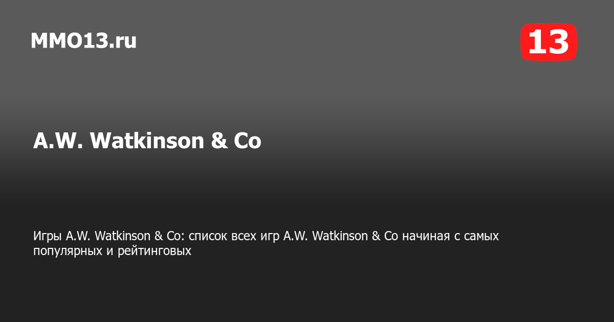 A.W. Watkinson & Co — все игры разработчика A.W. Watkinson & Co представлены на данной странице, начиная с самых популярных и рейтинговых на PC (ПК), PS4, Xbox и других платформах. Всего A.W. Watkinson & Co выпустила 1 игру.