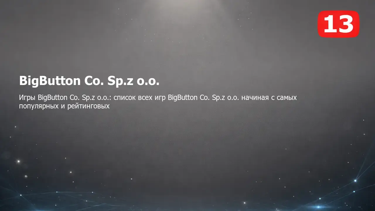 BigButton Co. Sp.z o.o. — все игры разработчика BigButton Co. Sp.z o.o. представлены на данной странице, начиная с самых популярных и рейтинговых на PC (ПК), PS4, Xbox и других платформах. Всего BigButton Co. Sp.z o.o. выпустила 1 игру.