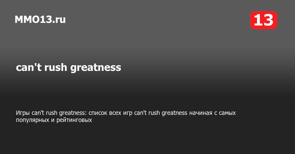 can't rush greatness — все игры разработчика can't rush greatness представлены на данной странице, начиная с самых популярных и рейтинговых на PC (ПК), PS4, Xbox и других платформах. Всего can't rush greatness выпустила 1 игру.