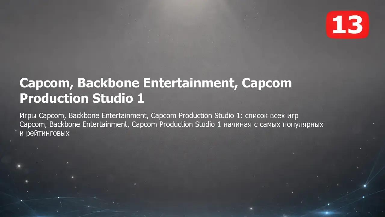 Capcom, Backbone Entertainment, Capcom Production Studio 1 — все игры разработчика Capcom, Backbone Entertainment, Capcom Production Studio 1 представлены на данной странице, начиная с самых популярных и рейтинговых на PC (ПК), PS4, Xbox и других платформах. Всего Capcom, Backbone Entertainment, Capcom Production Studio 1 выпустила 1 игру.