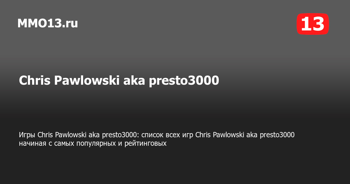 Игры Chris Pawlowski aka presto3000