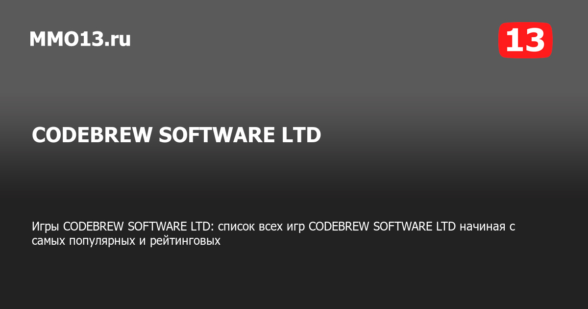 CODEBREW SOFTWARE LTD — все игры разработчика CODEBREW SOFTWARE LTD представлены на данной странице, начиная с самых популярных и рейтинговых на PC (ПК), PS4, Xbox и других платформах. Всего CODEBREW SOFTWARE LTD выпустила 1 игру.