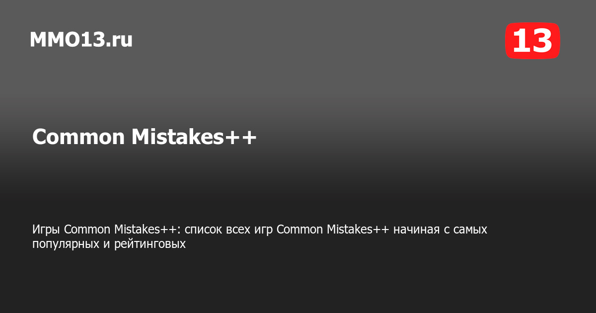 Common Mistakes++ — все игры разработчика Common Mistakes++ представлены на данной странице, начиная с самых популярных и рейтинговых на PC (ПК), PS4, Xbox и других платформах. Всего Common Mistakes++ выпустила 1 игру.