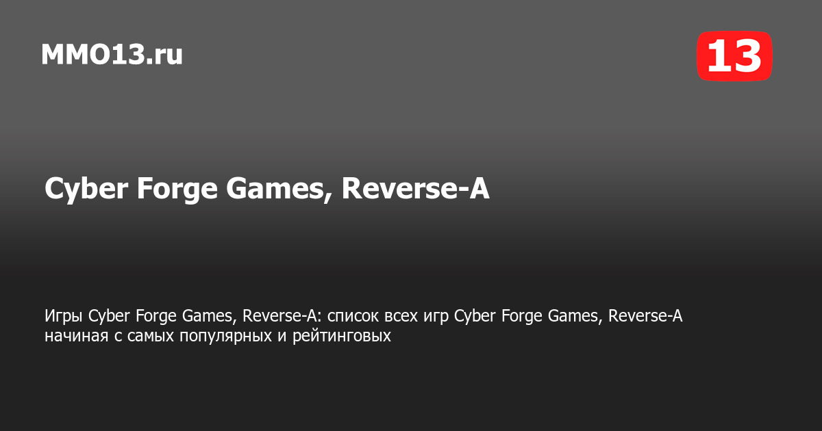 Cyber Forge Games, Reverse-A — все игры разработчика Cyber Forge Games, Reverse-A представлены на данной странице, начиная с самых популярных и рейтинговых на PC (ПК), PS4, Xbox и других платформах. Всего Cyber Forge Games, Reverse-A выпустила 1 игру.