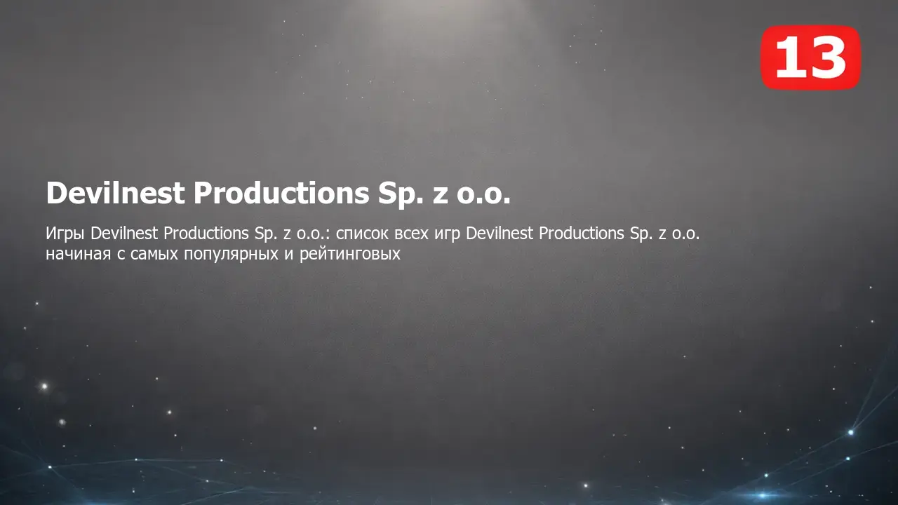 Devilnest Productions Sp. z o.o. — все игры разработчика Devilnest Productions Sp. z o.o. представлены на данной странице, начиная с самых популярных и рейтинговых на PC (ПК), PS4, Xbox и других платформах. Всего Devilnest Productions Sp. z o.o. выпустила 1 игру.