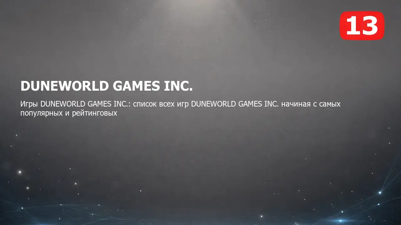 DUNEWORLD GAMES INC. — все игры разработчика DUNEWORLD GAMES INC. представлены на данной странице, начиная с самых популярных и рейтинговых на PC (ПК), PS4, Xbox и других платформах. Всего DUNEWORLD GAMES INC. выпустила 1 игру.