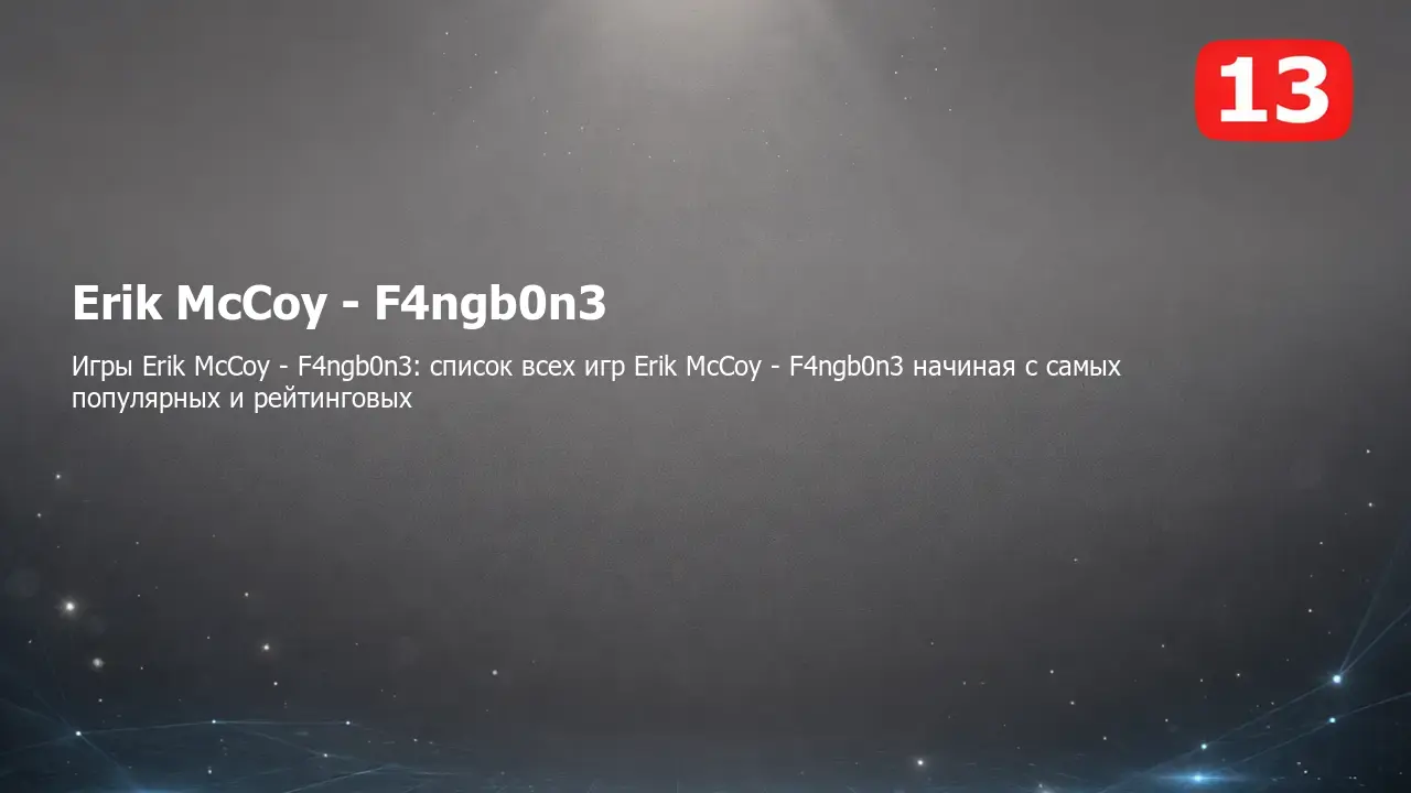Erik McCoy - F4ngb0n3 — все игры разработчика Erik McCoy - F4ngb0n3 представлены на данной странице, начиная с самых популярных и рейтинговых на PC (ПК), PS4, Xbox и других платформах. Всего Erik McCoy - F4ngb0n3 выпустила 1 игру.