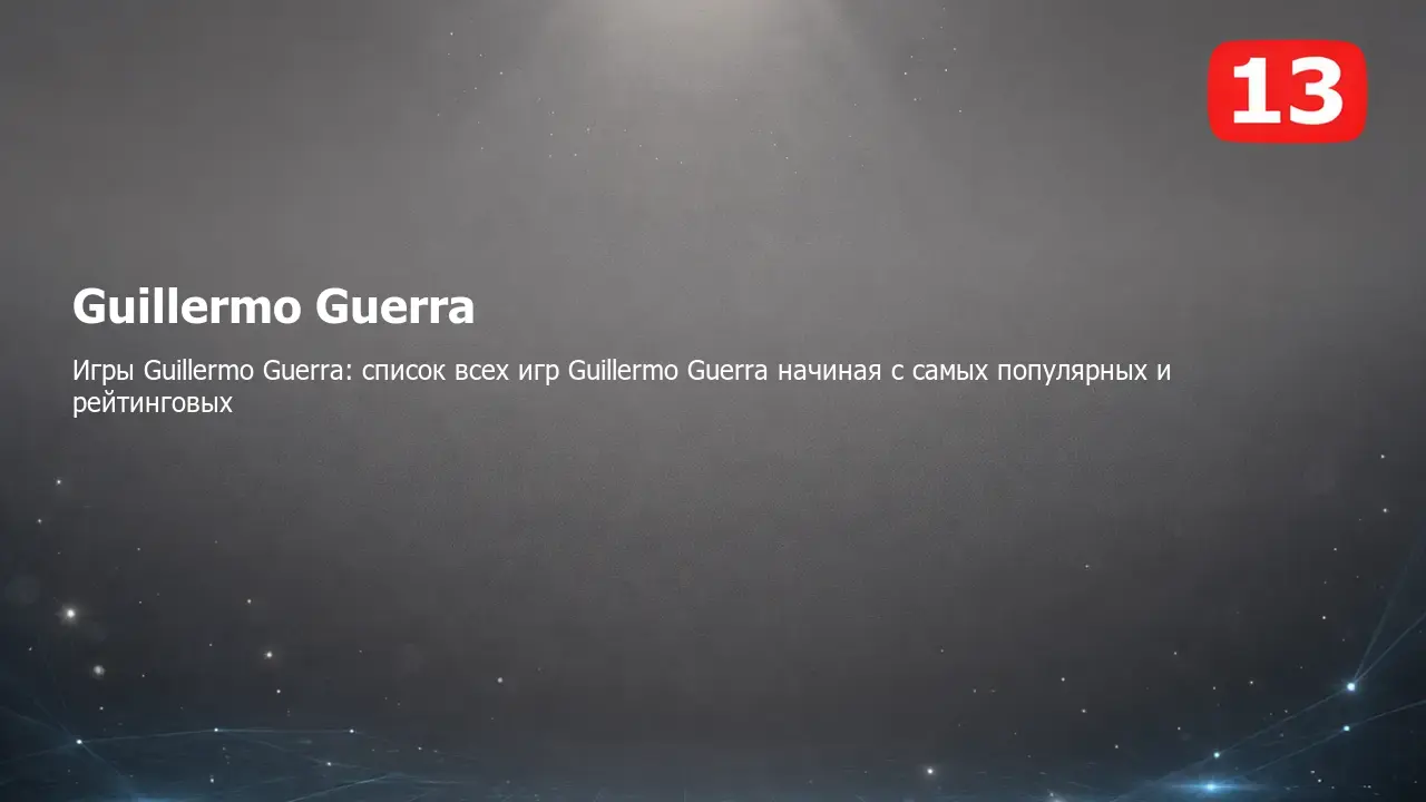 Guillermo Guerra — все игры разработчика Guillermo Guerra представлены на данной странице, начиная с самых популярных и рейтинговых на PC (ПК), PS4, Xbox и других платформах. Всего Guillermo Guerra выпустила 1 игру.