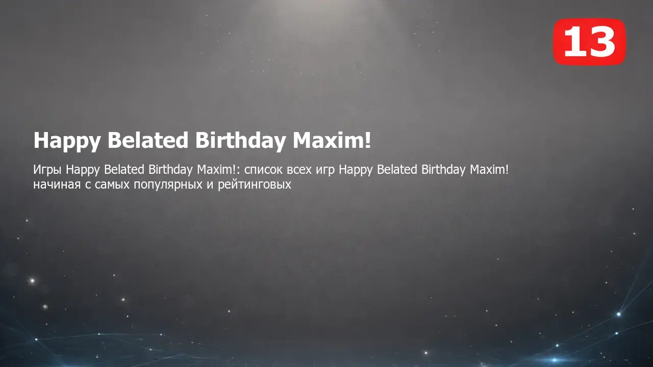 Happy Belated Birthday Maxim! — все игры разработчика Happy Belated Birthday Maxim! представлены на данной странице, начиная с самых популярных и рейтинговых на PC (ПК), PS4, Xbox и других платформах. Всего Happy Belated Birthday Maxim! выпустила 1 игру.