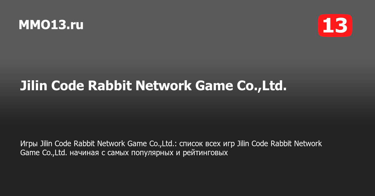 Jilin Code Rabbit Network Game Co.,Ltd. — все игры разработчика Jilin Code Rabbit Network Game Co.,Ltd. представлены на данной странице, начиная с самых популярных и рейтинговых на PC (ПК), PS4, Xbox и других платформах. Всего Jilin Code Rabbit Network Game Co.,Ltd. выпустила 1 игру.