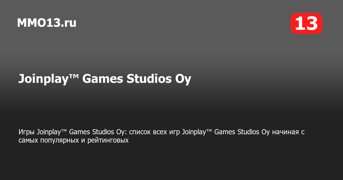 Joinplay™ Games Studios Oy — все игры разработчика Joinplay™ Games Studios Oy представлены на данной странице, начиная с самых популярных и рейтинговых на PC (ПК), PS4, Xbox и других платформах. Всего Joinplay™ Games Studios Oy выпустила 1 игру.