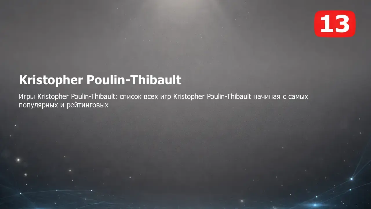Kristopher Poulin-Thibault — все игры разработчика Kristopher Poulin-Thibault представлены на данной странице, начиная с самых популярных и рейтинговых на PC (ПК), PS4, Xbox и других платформах. Всего Kristopher Poulin-Thibault выпустила 1 игру.