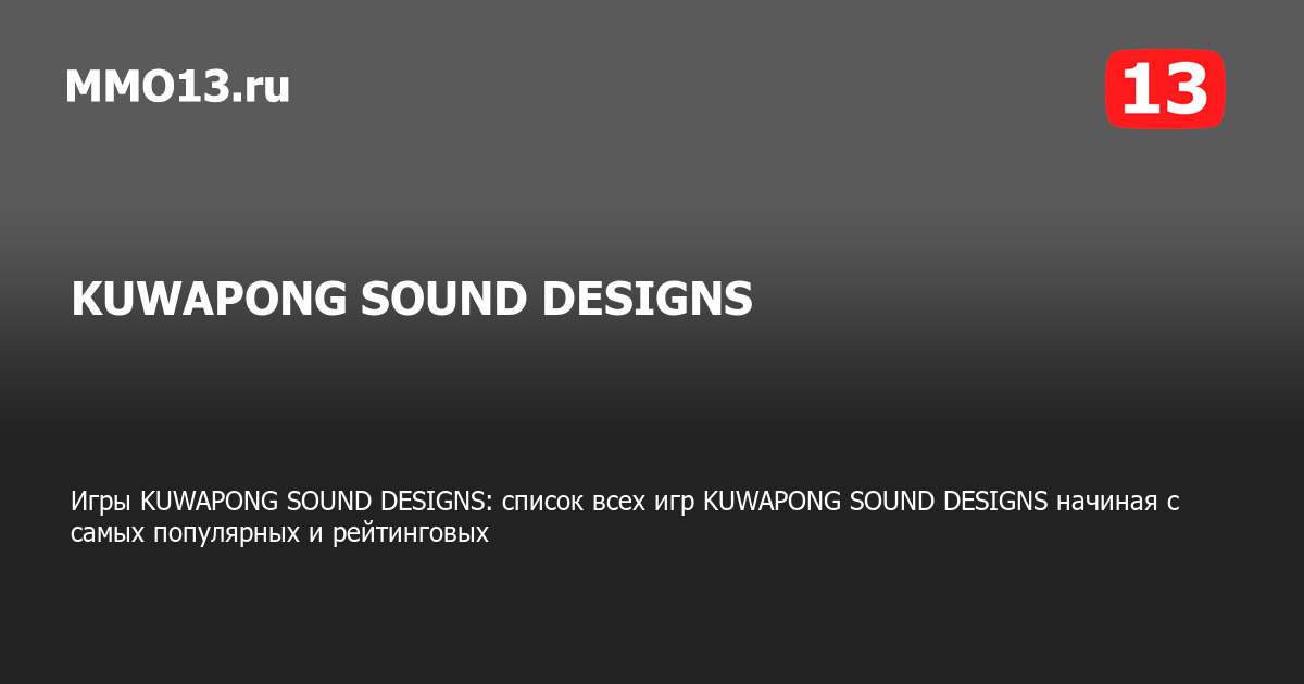 KUWAPONG SOUND DESIGNS — все игры разработчика KUWAPONG SOUND DESIGNS представлены на данной странице, начиная с самых популярных и рейтинговых на PC (ПК), PS4, Xbox и других платформах. Всего KUWAPONG SOUND DESIGNS выпустила 1 игру.