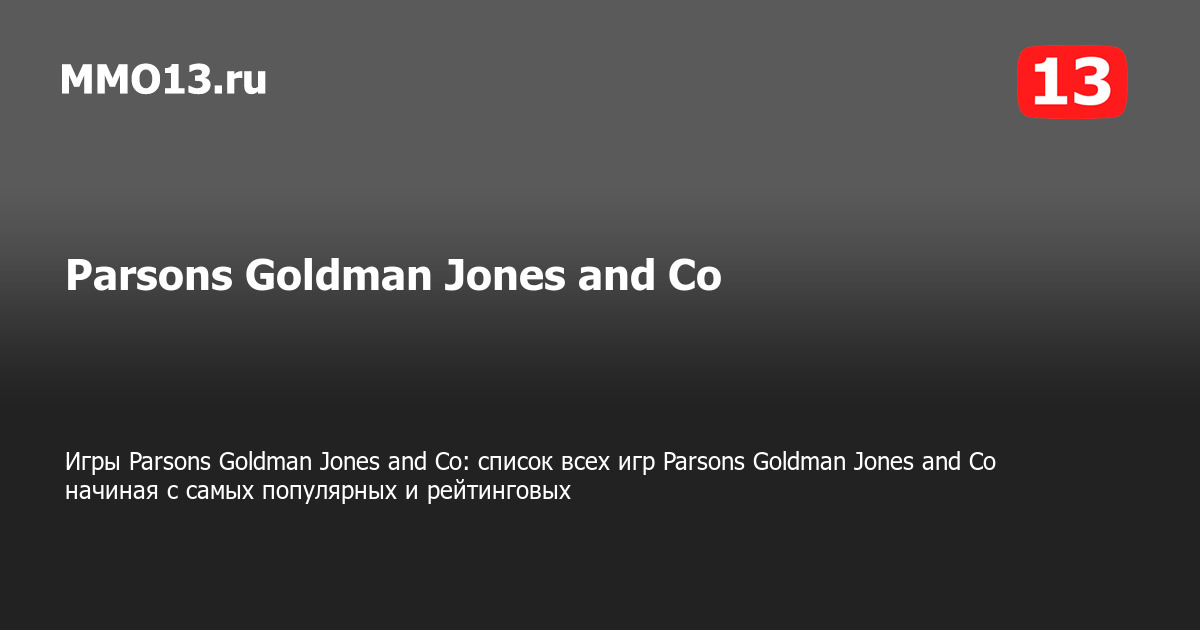 Parsons Goldman Jones and Co — все игры разработчика Parsons Goldman Jones and Co представлены на данной странице, начиная с самых популярных и рейтинговых на PC (ПК), PS4, Xbox и других платформах. Всего Parsons Goldman Jones and Co выпустила 1 игру.