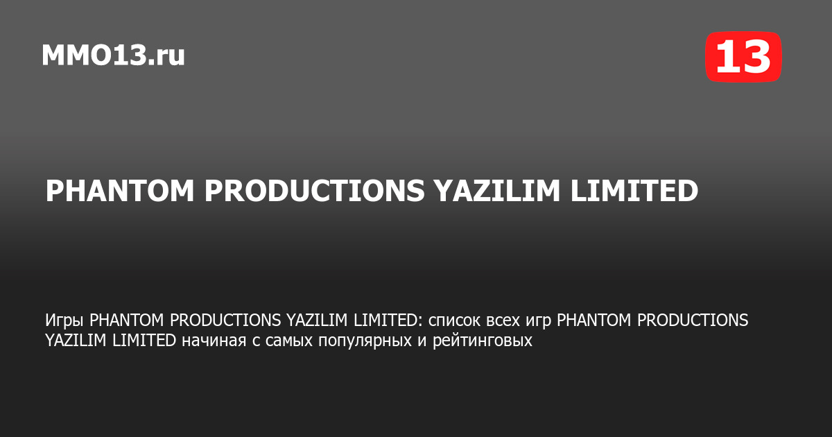 Игры PHANTOM PRODUCTIONS YAZILIM LIMITED