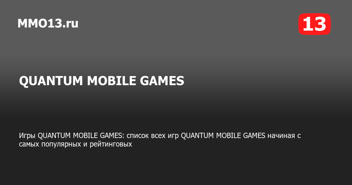 QUANTUM MOBILE GAMES — все игры разработчика QUANTUM MOBILE GAMES представлены на данной странице, начиная с самых популярных и рейтинговых на PC (ПК), PS4, Xbox и других платформах. Всего QUANTUM MOBILE GAMES выпустила 1 игру.