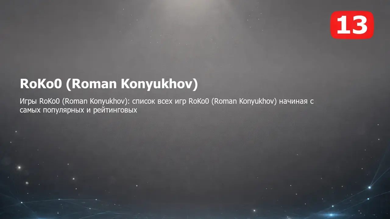 RoKo0 (Roman Konyukhov) — все игры разработчика RoKo0 (Roman Konyukhov) представлены на данной странице, начиная с самых популярных и рейтинговых на PC (ПК), PS4, Xbox и других платформах. Всего RoKo0 (Roman Konyukhov) выпустила 1 игру.