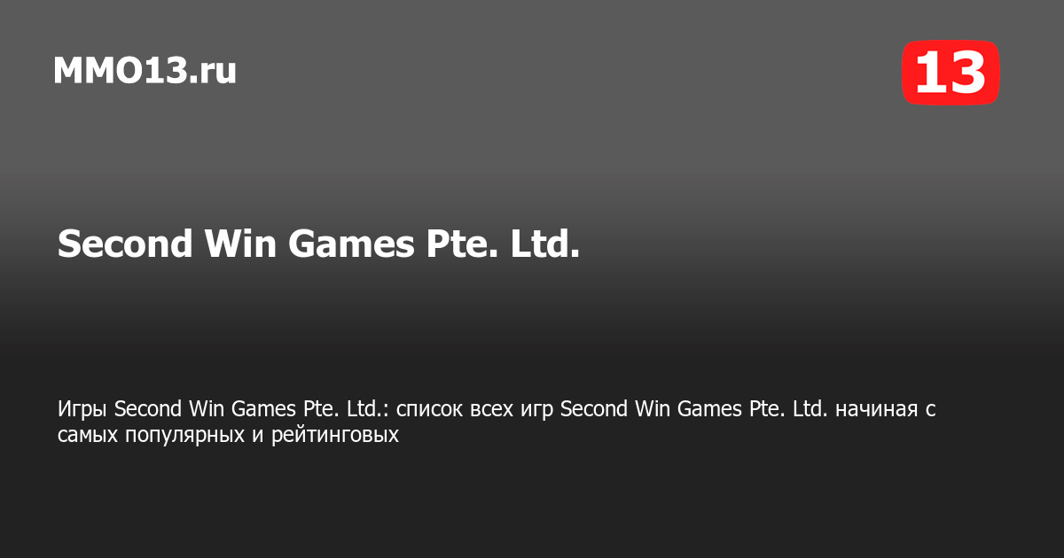 Second Win Games Pte. Ltd. — все игры разработчика Second Win Games Pte. Ltd. представлены на данной странице, начиная с самых популярных и рейтинговых на PC (ПК), PS4, Xbox и других платформах. Всего Second Win Games Pte. Ltd. выпустила 1 игру.