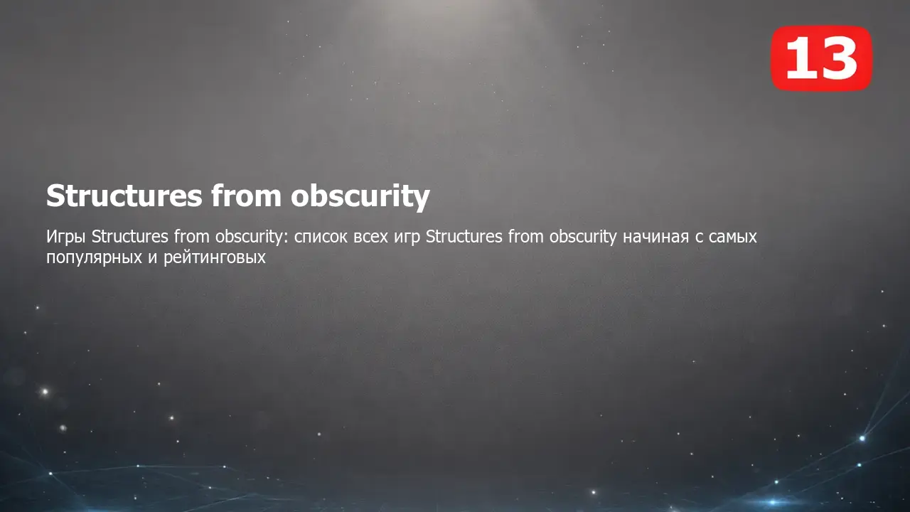 Structures from obscurity — все игры разработчика Structures from obscurity представлены на данной странице, начиная с самых популярных и рейтинговых на PC (ПК), PS4, Xbox и других платформах. Всего Structures from obscurity выпустила 1 игру.