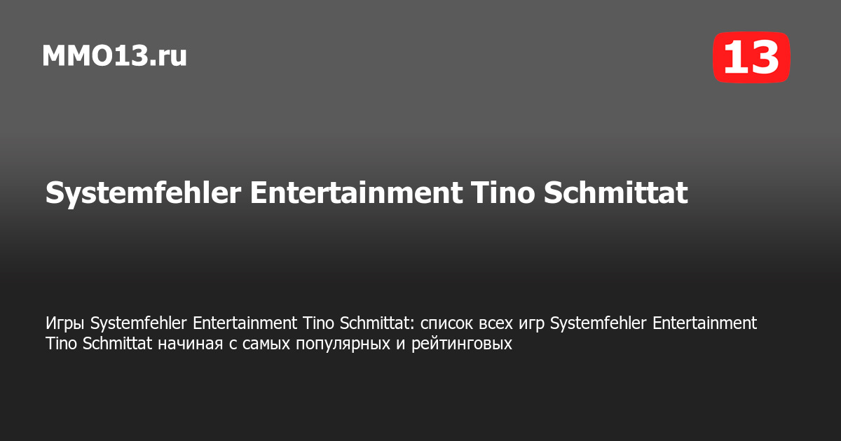 Systemfehler Entertainment Tino Schmittat — все игры разработчика Systemfehler Entertainment Tino Schmittat представлены на данной странице, начиная с самых популярных и рейтинговых на PC (ПК), PS4, Xbox и других платформах. Всего Systemfehler Entertainment Tino Schmittat выпустила 1 игру.