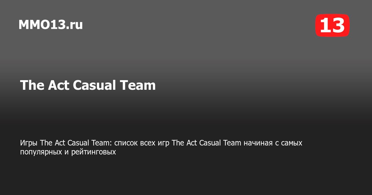 The Act Casual Team — все игры разработчика The Act Casual Team представлены на данной странице, начиная с самых популярных и рейтинговых на PC (ПК), PS4, Xbox и других платформах. Всего The Act Casual Team выпустила 1 игру.
