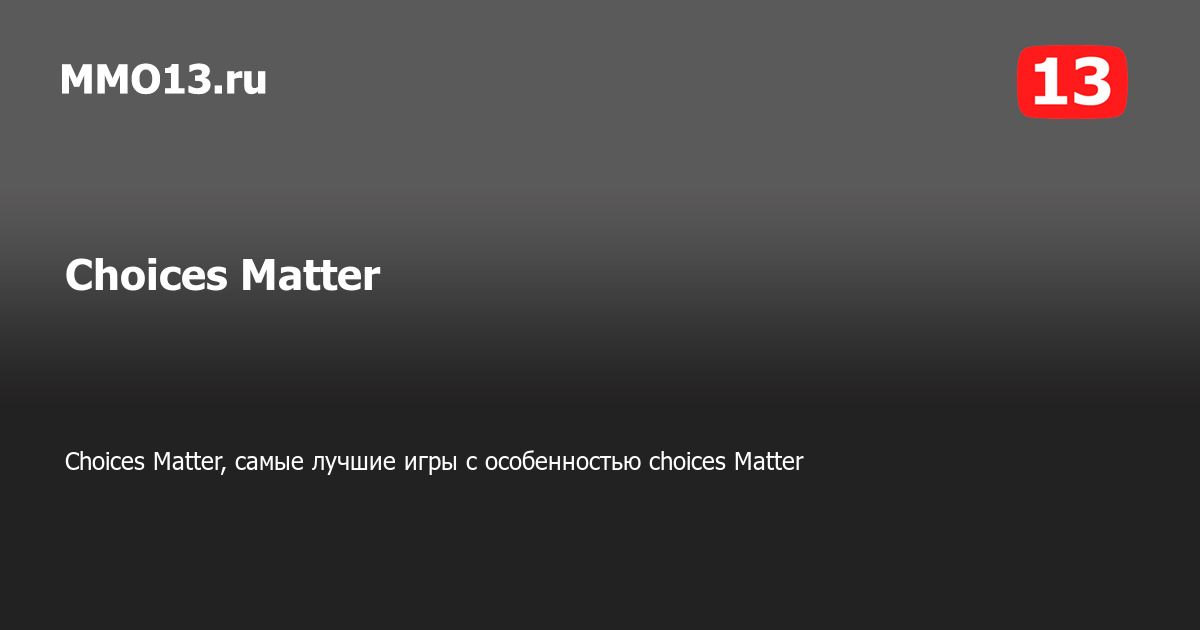 Choices Matter — все самые лучшие игры с особенностью choices Matter представлены на данной странице, начиная с самых популярных и рейтинговых. Всего в списке игр «choices Matter» 1 игра.