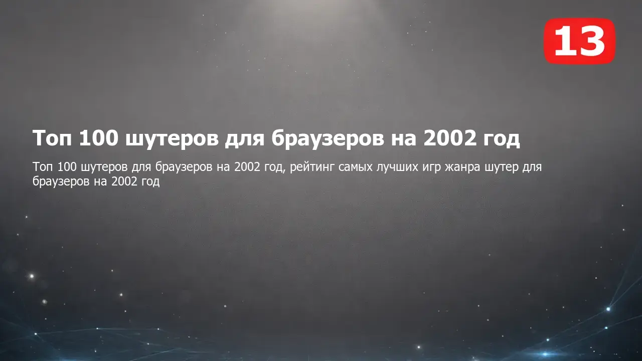 В данном разделе предоставлен рейтинг лучших игр «ТОП 100» в жанре Шутер для браузеров на 2002 год, основанный на популярности игр этого направления среди наших читателей и оценке редакции MMO13. Рейтинг обновляется на регулярной основе, в зависимости от актуальности, текущей популярности и статуса игры.