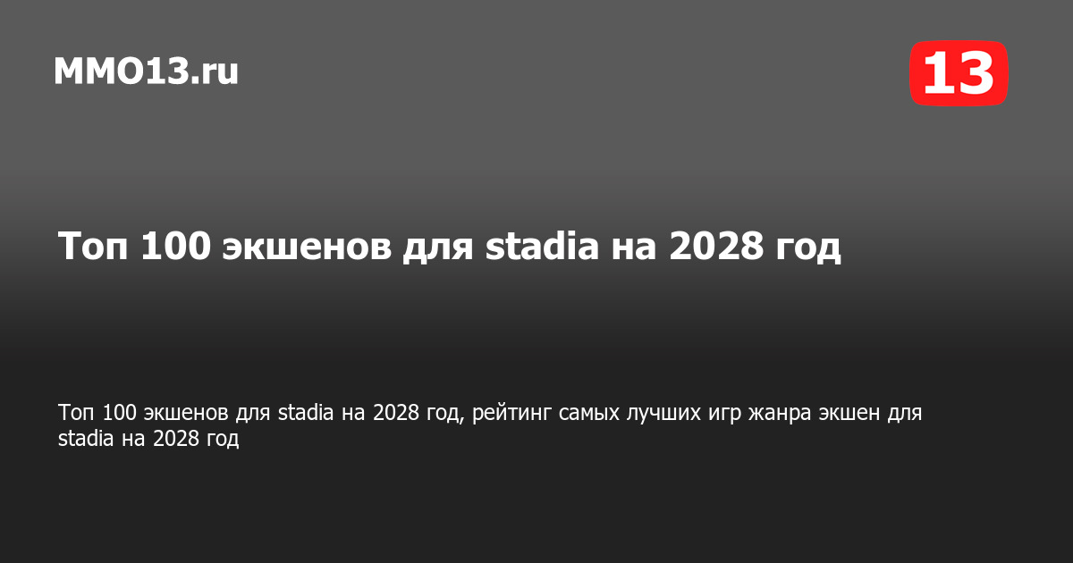 В данном разделе предоставлен рейтинг лучших игр «ТОП 100» в жанре Экшен для stadia на 2028 год, основанный на популярности игр этого направления среди наших читателей и оценке редакции MMO13. Рейтинг обновляется на регулярной основе, в зависимости от актуальности, текущей популярности и статуса игры.