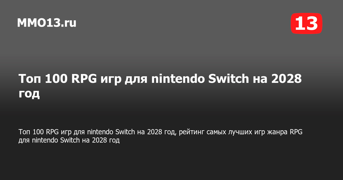 В данном разделе предоставлен рейтинг лучших игр «ТОП 100» в жанре RPG для nintendo Switch на 2028 год, основанный на популярности игр этого направления среди наших читателей и оценке редакции MMO13. Рейтинг обновляется на регулярной основе, в зависимости от актуальности, текущей популярности и статуса игры.