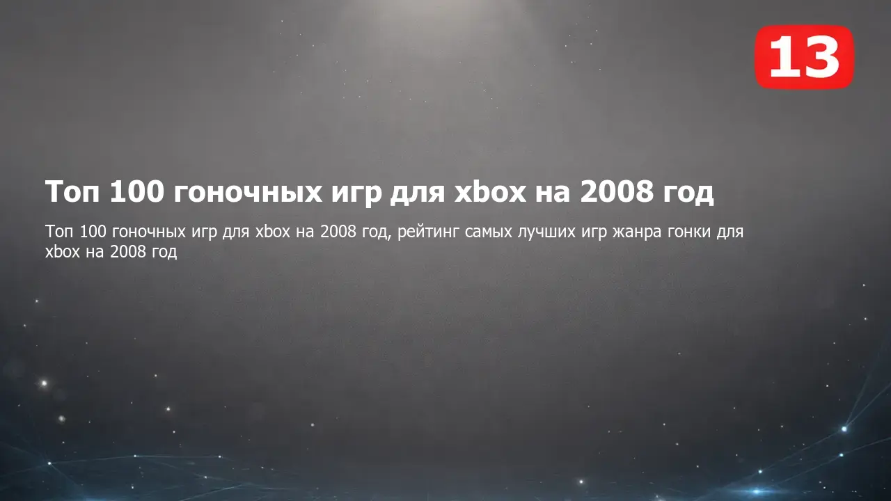 В данном разделе предоставлен рейтинг лучших игр «ТОП 100» в жанре Гонки для xbox на 2008 год, основанный на популярности игр этого направления среди наших читателей и оценке редакции MMO13. Рейтинг обновляется на регулярной основе, в зависимости от актуальности, текущей популярности и статуса игры.