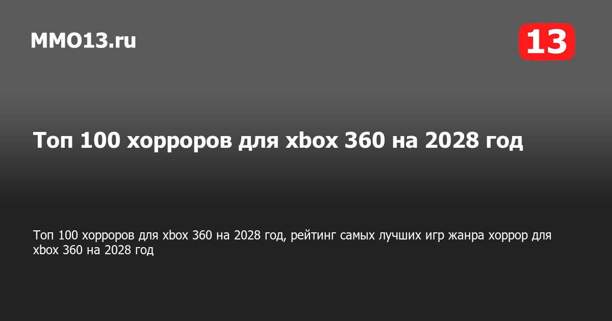 Топ 100 хорроров для xbox 360 на 2028 год