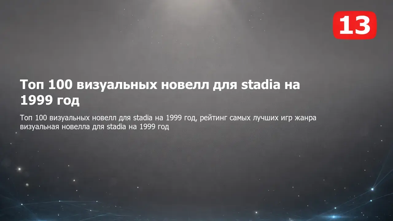 Представляем вашему вниманию «ТОП 100» лучших игр в жанре Визуальная новелла для stadia на 1999 год и их рейтинг. У рейтинга имеется система фильтров по жанру, что позволяет читателям сразу перейти к конкретным направлениям.