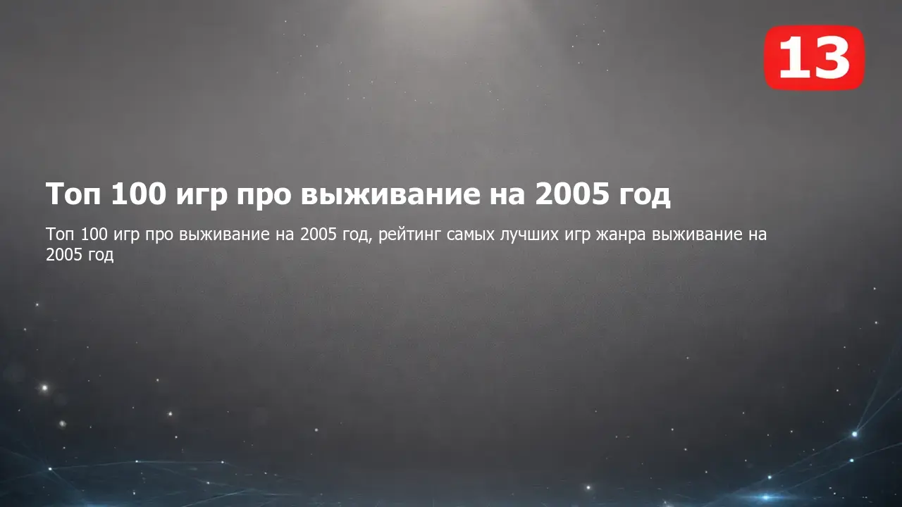 В данном разделе предоставлен рейтинг лучших игр «ТОП 100» в жанре Выживание на 2005 год, основанный на популярности игр этого направления среди наших читателей и оценке редакции MMO13. Рейтинг обновляется на регулярной основе, в зависимости от актуальности, текущей популярности и статуса игры.