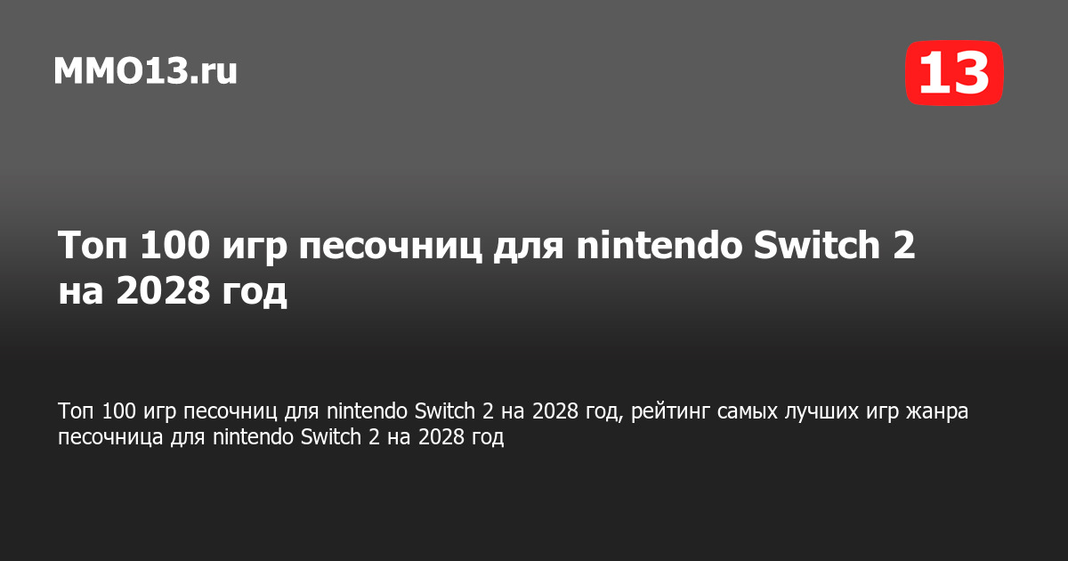 Топ 100 игр песочниц для nintendo Switch 2 на 2028 год