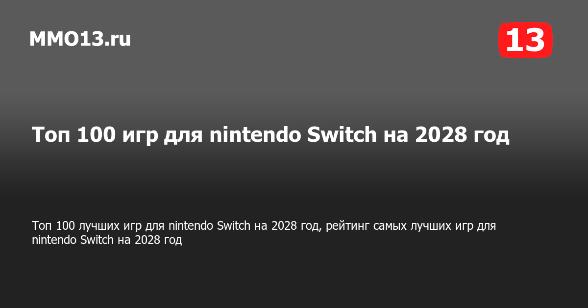 В данном разделе предоставлен рейтинг лучших игр «ТОП 100» для nintendo Switch на 2028 год, основанный на популярности игр этого направления среди наших читателей и оценке редакции MMO13. Рейтинг обновляется на регулярной основе, в зависимости от актуальности, текущей популярности и статуса игры.