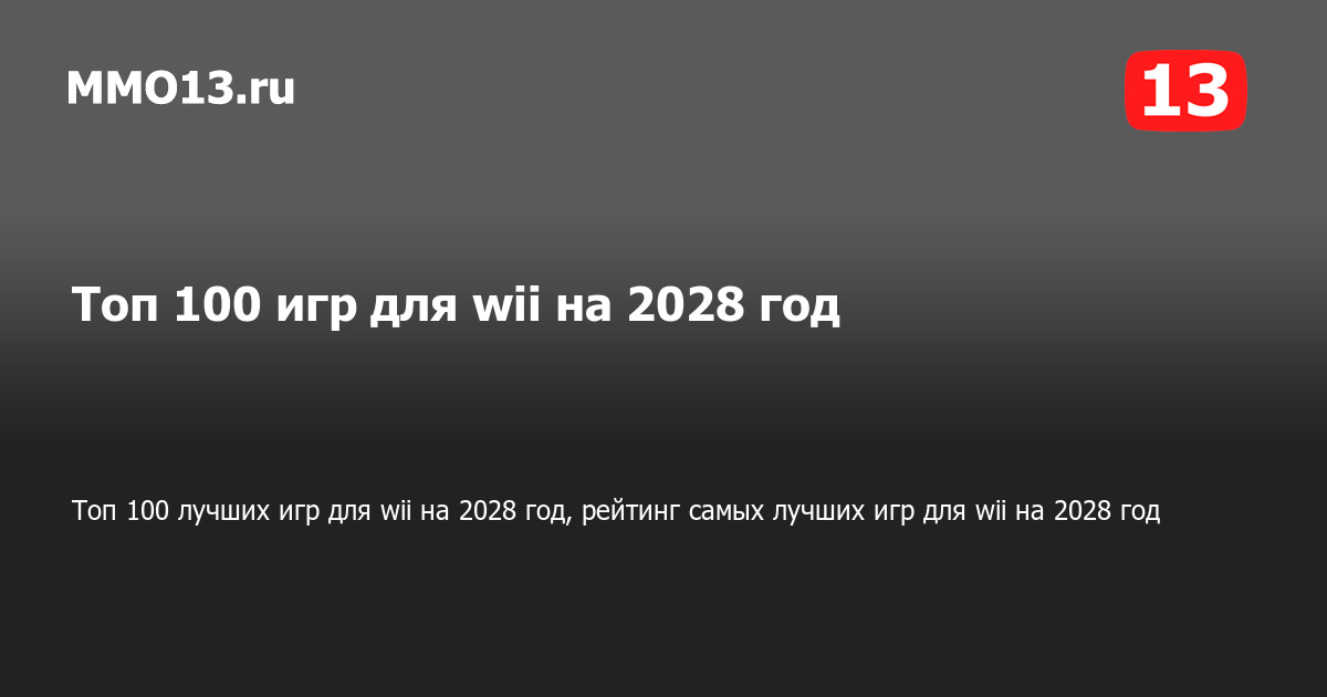 В данном разделе предоставлен рейтинг лучших игр «ТОП 100» для wii на 2028 год, основанный на популярности игр этого направления среди наших читателей и оценке редакции MMO13. Рейтинг обновляется на регулярной основе, в зависимости от актуальности, текущей популярности и статуса игры.