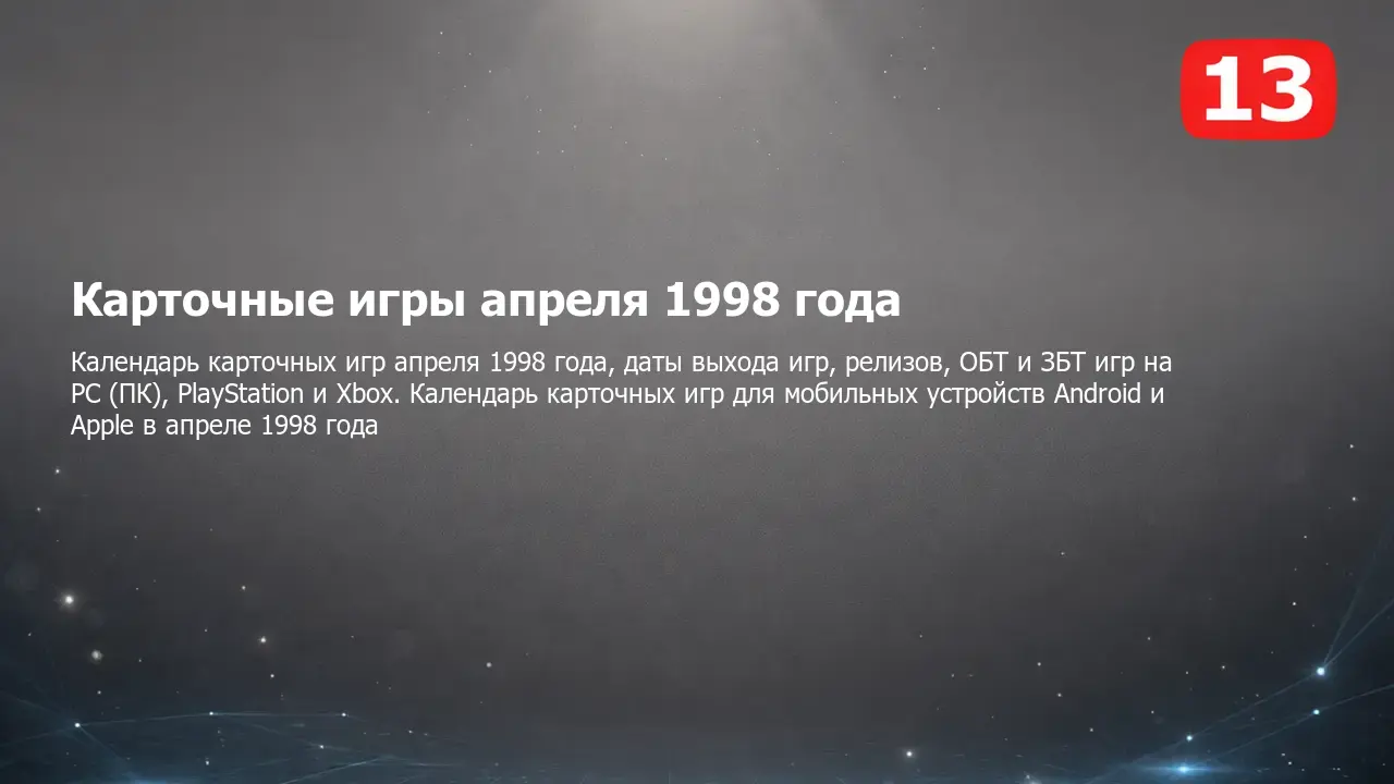 Календарь выхода карточных игр мая 1998 года на PC (ПК), PlayStation и Xbox, мобильных устройствах Android и Apple и других платформах. Самые ожидаемые и интересные компьютерные, консольные и мобильные карточные игры, а также даты выхода, релизы, ОБТ, ЗБТ и другие тесты в календаре карточных игр на май 1998 года.