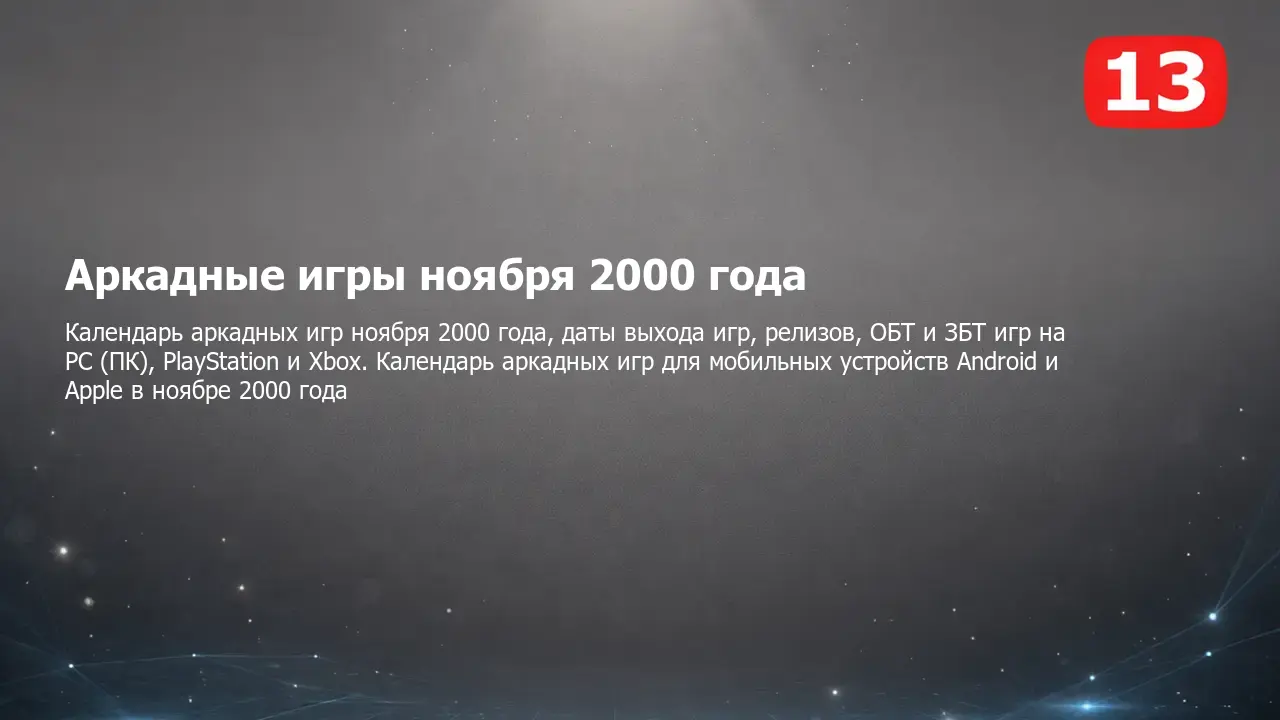 Календарь выхода аркадных игр ноября 2000 года на PC (ПК), PlayStation и Xbox, мобильных устройствах Android и Apple и других платформах. Самые ожидаемые и интересные компьютерные, консольные и мобильные аркадные игры, а также даты выхода, релизы, ОБТ, ЗБТ и другие тесты в календаре аркадных игр на ноябрь 2000 года.