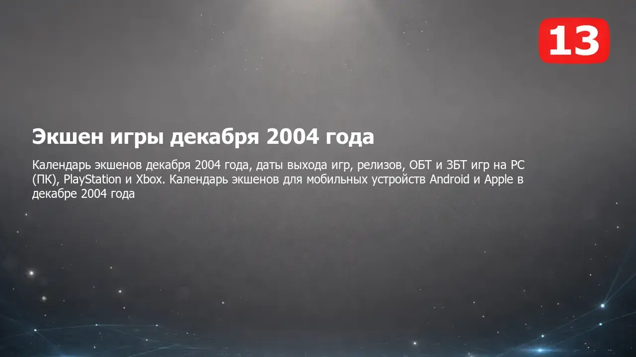 Календарь выхода экшенов августа 2004 года на PC (ПК), PlayStation и Xbox, мобильных устройствах Android и Apple и других платформах. Самые ожидаемые и интересные компьютерные, консольные и мобильные экшен игры, а также даты выхода, релизы, ОБТ, ЗБТ и другие тесты в календаре экшенов на август 2004 года.