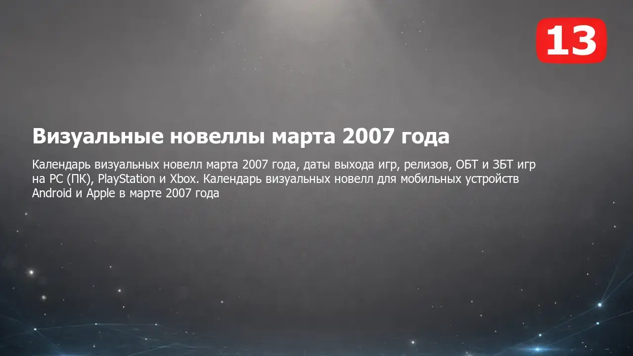 Календарь выхода визуальных новелл марта 2007 года на PC (ПК), PlayStation и Xbox, мобильных устройствах Android и Apple и других платформах. Самые ожидаемые и интересные компьютерные, консольные и мобильные визуальные новеллы, а также даты выхода, релизы, ОБТ, ЗБТ и другие тесты в календаре визуальных новелл на март 2007 года.