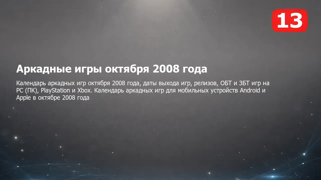 Календарь выхода аркадных игр октября 2008 года на PC (ПК), PlayStation и Xbox, мобильных устройствах Android и Apple и других платформах. Самые ожидаемые и интересные компьютерные, консольные и мобильные аркадные игры, а также даты выхода, релизы, ОБТ, ЗБТ и другие тесты в календаре аркадных игр на октябрь 2008 года.
