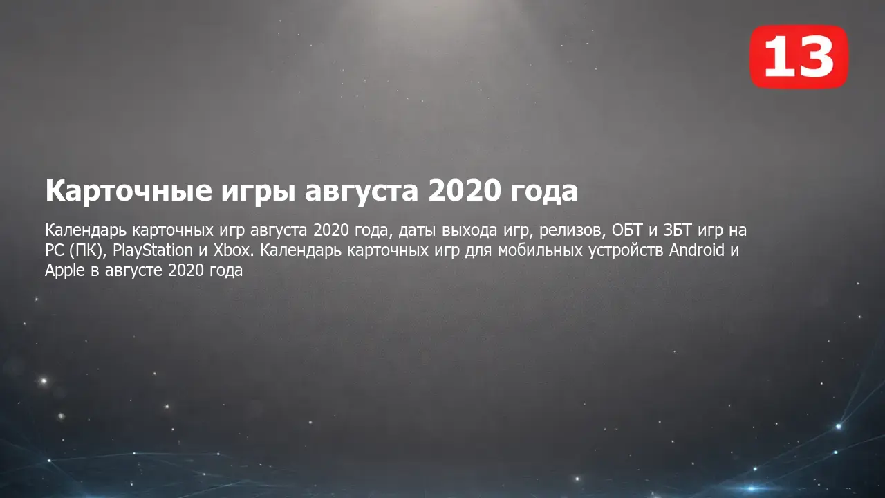 Календарь выхода карточных игр декабря 2020 года на PC (ПК), PlayStation и Xbox, мобильных устройствах Android и Apple и других платформах. Самые ожидаемые и интересные компьютерные, консольные и мобильные карточные игры, а также даты выхода, релизы, ОБТ, ЗБТ и другие тесты в календаре карточных игр на декабрь 2020 года.