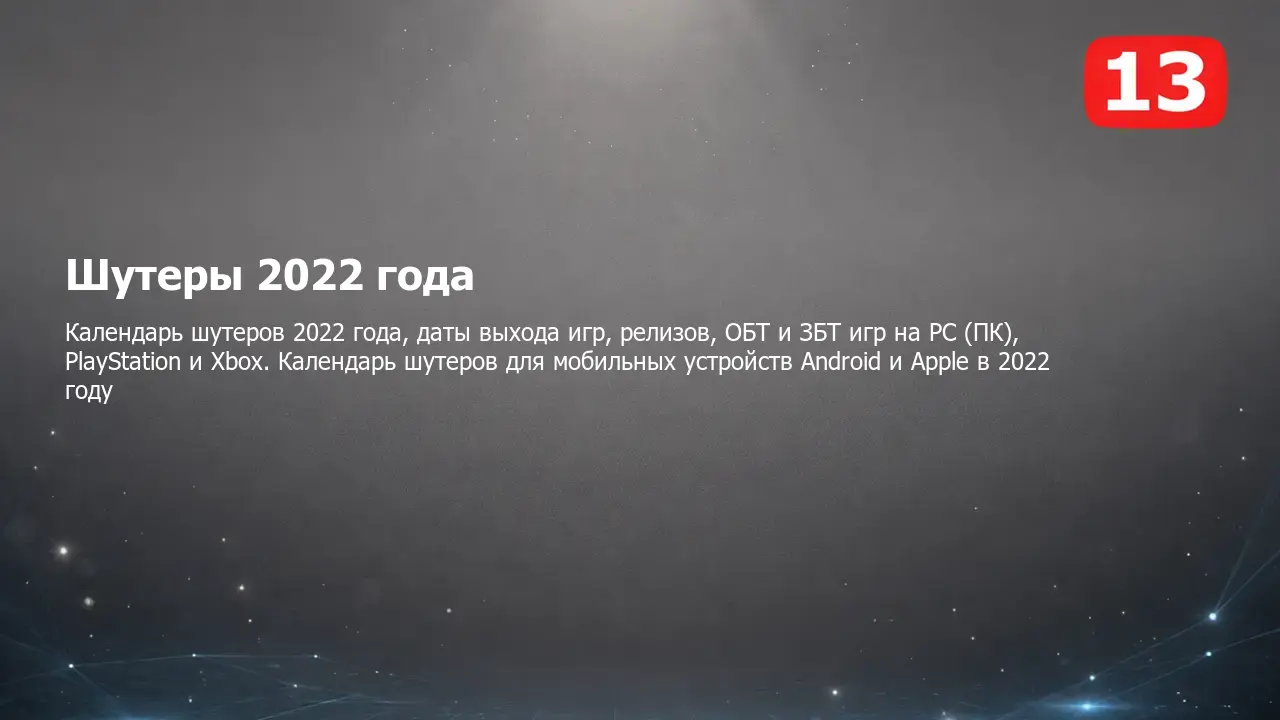 Календарь выхода шутеров 2022 года на PC (ПК), PlayStation и Xbox, мобильных устройствах Android и Apple и других платформах. Самые ожидаемые и интересные компьютерные, консольные и мобильные шутеры, а также даты выхода, релизы, ОБТ, ЗБТ и другие тесты в календаре шутеров на 2022 год.