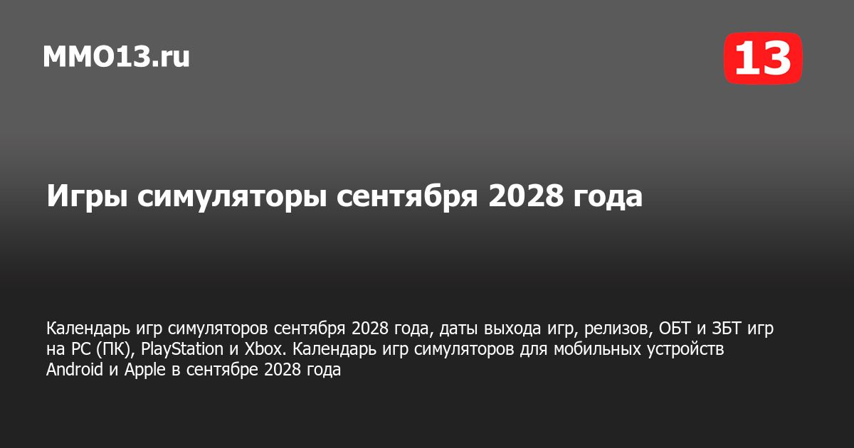 Календарь выхода игр симуляторов декабря 2028 года на PC (ПК), PlayStation и Xbox, мобильных устройствах Android и Apple и других платформах. Самые ожидаемые и интересные компьютерные, консольные и мобильные игры симуляторы, а также даты выхода, релизы, ОБТ, ЗБТ и другие тесты в календаре игр симуляторов на декабрь 2028 года.